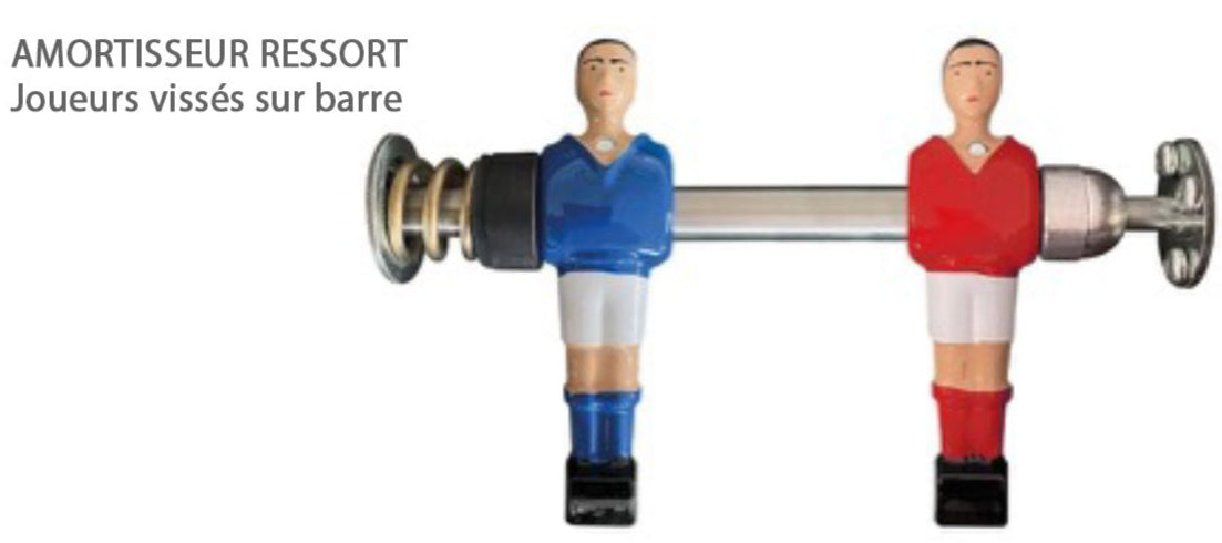 Table football identical to café games, with "spring" shock absorbers for quieter cushioning and a "café" table football type appearance.
